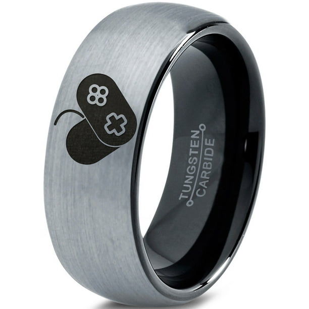 Tungsten Gaming Gamer Video Game Love Heart Emoji Band Ring 8mm Men Women Comfort Fit Black Dome Brushed Gray Polished Walmart Com